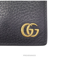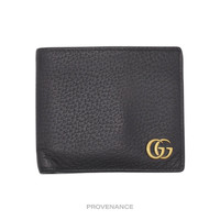 Gucci GG Marmont Bifold Wallet - Black Leather 100% Authentic - Money Back Guarantee ORIGINAL RETAIL BOX + DUST BAG INCLUDED Condition Notes: some signs of cosmetic wear some coin compartment lining wear From the Gucci website: "A bi-fold wallet, distinguished by our signature Double G hardware. Made in calfskin leather heat-stamped to achieve a boar effect, giving it a textured appearance. - Black metal-free tanned leather - 4 card slots - 2 compartments for bills - 1 snap-closure compartment - 2 utility compartments - Tonal leather lining - Made in Italy Measurement: Open: 8.25"W x 3.5"H Closed: 4.3"W x 3.5"H FREE EXPRESS SHIPPING SAME-DAY SHIPPING HASSLE-FREE RETURNS