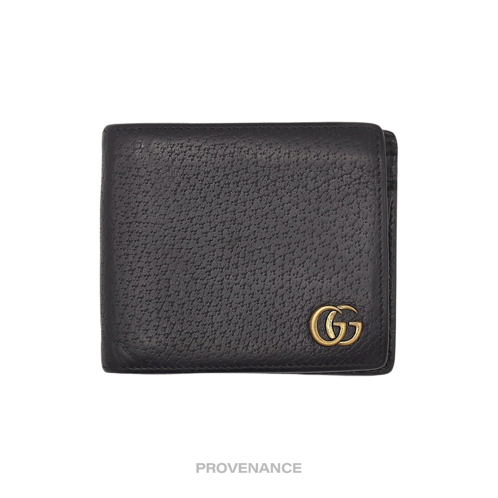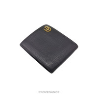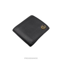 Gucci GG Marmont Bifold Wallet - Black Leather 100% Authentic - Money Back Guarantee Condition Notes: some signs of cosmetic wear some coin compartment lining wear From the Gucci website: "A bi-fold wallet, distinguished by our signature Double G hardware. Made in calfskin leather heat-stamped to achieve a boar effect, giving it a textured appearance. - Black metal-free tanned leather - 6 card slots - 2 compartments for bills - 2 utility compartments - Tonal leather lining - Made in Italy Measurement: Open: 8.25"W x 3.5"H Closed: 4.3"W x 3.5"H FREE EXPRESS SHIPPING SAME-DAY SHIPPING HASSLE-FREE RETURNS