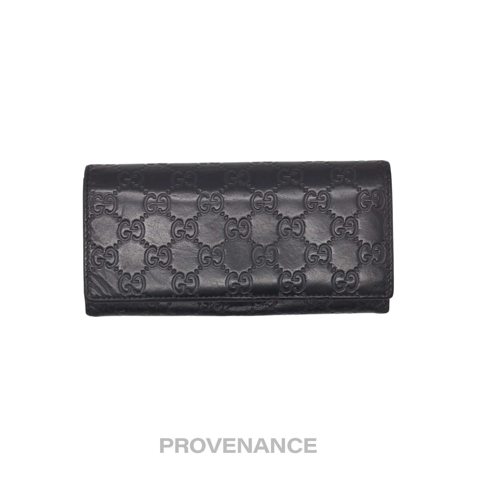 Gucci Long Wallet - Black Guccissima Leather 100% Authentic - Money-Back Guarantee Condition Notes: some signs of cosmetic wear - MicroGuccissima Leather - 8 interior card slots - 3 interior utility slots - 1 zipped compartment - Gusseted construction - Snap closure - Made in Italy FREE EXPRESS SHIPPING SAME-DAY SHIPPING HASSLE-FREE RETURNS