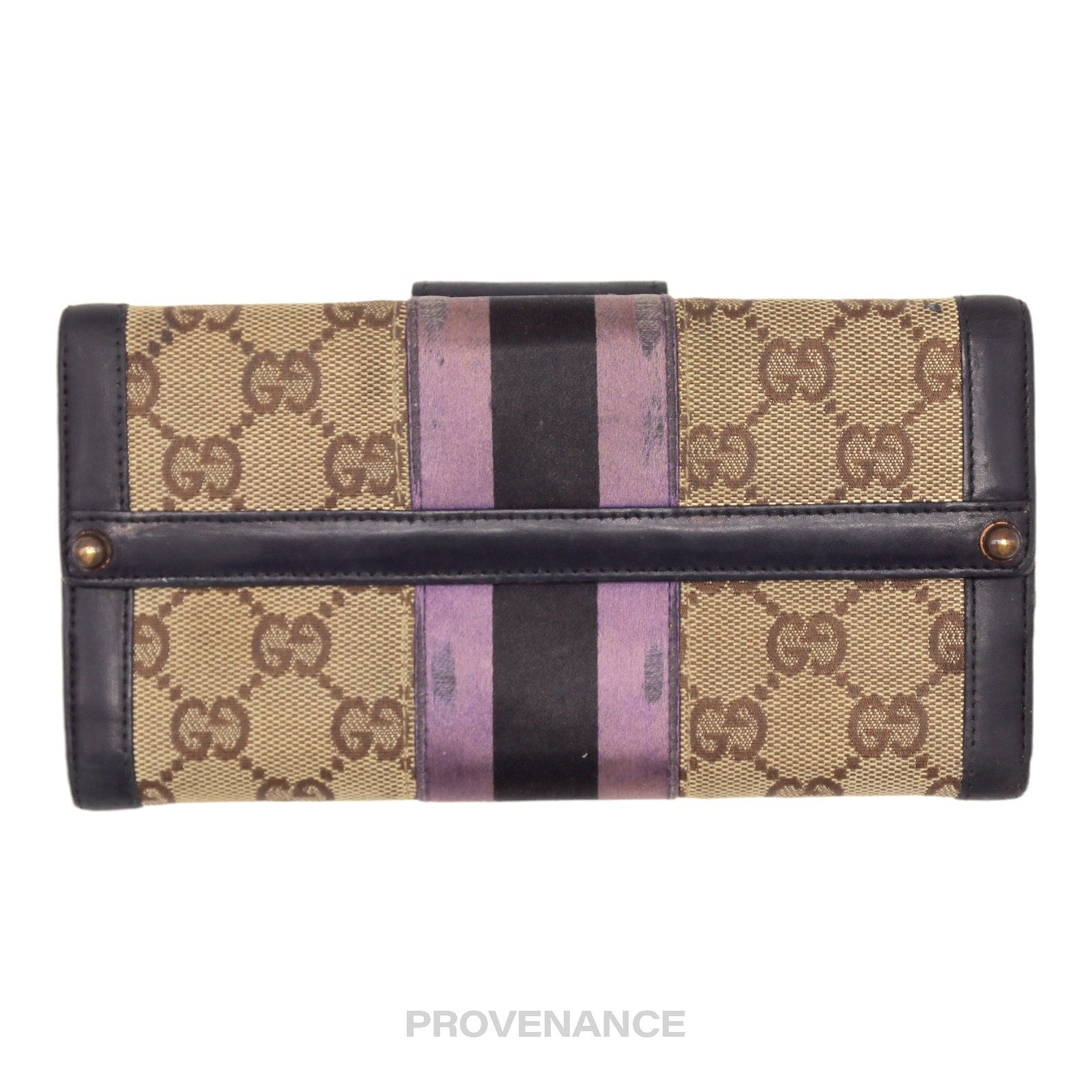 Gucci Long Wallet - GG Canvas Stripe 100% Authentic - Money Back Guarantee Condition Notes: some signs of cosmetic wear - 6 card slots - 1 zipped compartment - 1 utility compartment - 1 side slot - Tonal leather lining FREE EXPRESS SHIPPING SHIPS WITHIN 24HR. HASSLE-FREE RETURNS