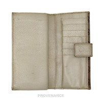 Gucci Long Wallet - GG Canvas White 100% Authentic - Money Back Guarantee Condition Notes: some signs of cosmetic wear Zipper pull professionally replaced - 6 card slots - 1 zipped compartment - 1 utility compartment - 1 side slot - Tonal leather lining FREE EXPRESS SHIPPING SHIPS WITHIN 24HR. HASSLE-FREE RETURNS