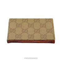 Gucci Pocket Organizer Wallet - Brown GG Canvas Crocodile Brick Red Leather 100% Authentic - Money Back Guarantee RARE GENUINE CROCODILE LEATHER TRIM MODEL Condition Notes: very minor signs of cosmetic wear - Classic GG Canvas - 4 card slots - Genuine crocodile leather trim - Tonal leather lining - Made in Italy FREE EXPRESS SHIPPING SHIPS WITHIN 24HR. HASSLE-FREE RETURNS