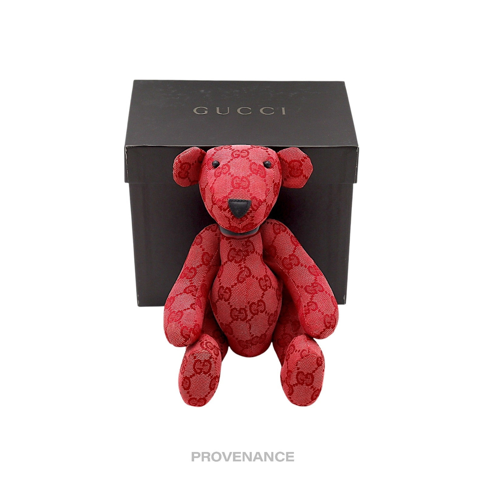 Gucci Teddy Bear - Red GG Canvas 100% Authentic - Money-Back Guarantee ORIGINAL RETAIL BOX INCLUDED Condition Notes: some signs of cosmetic wear - Classic GG Canvas - Articulated appendages - Made in Italy FREE EXPRESS SHIPPING SAME-DAY SHIPPING HASSLE-FREE RETURNS