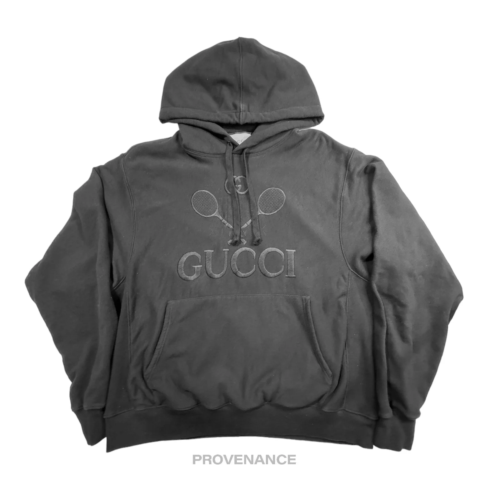 Gucci Tennis Hoodie - Black French Terry L 100% Authentic - Money Back Guarantee AS SEEN ON DRAKE IN "LIFE IS GOOD" MUSIC VIDEO Condition Notes: some signs of cosmetic wear professionally cleaned Est. Retail: $1600 - 100% Cotton - Heavy French Terry fabric - Drawstring closure - Oversize Fit - Kangaroo pocket at obverse - Logo embroidered at chest - Ribbed Details - Made in Italy *Listing images 10-14 are for illustrative purposes only and do not reflect the condition of the item being offered for sale in this listing. Listing images 1-9 are our own and are of the item being offered for sale in this listing. * FREE EXPRESS SHIPPING SHIPS WITHIN 24HR. HASSLE-FREE RETURNS