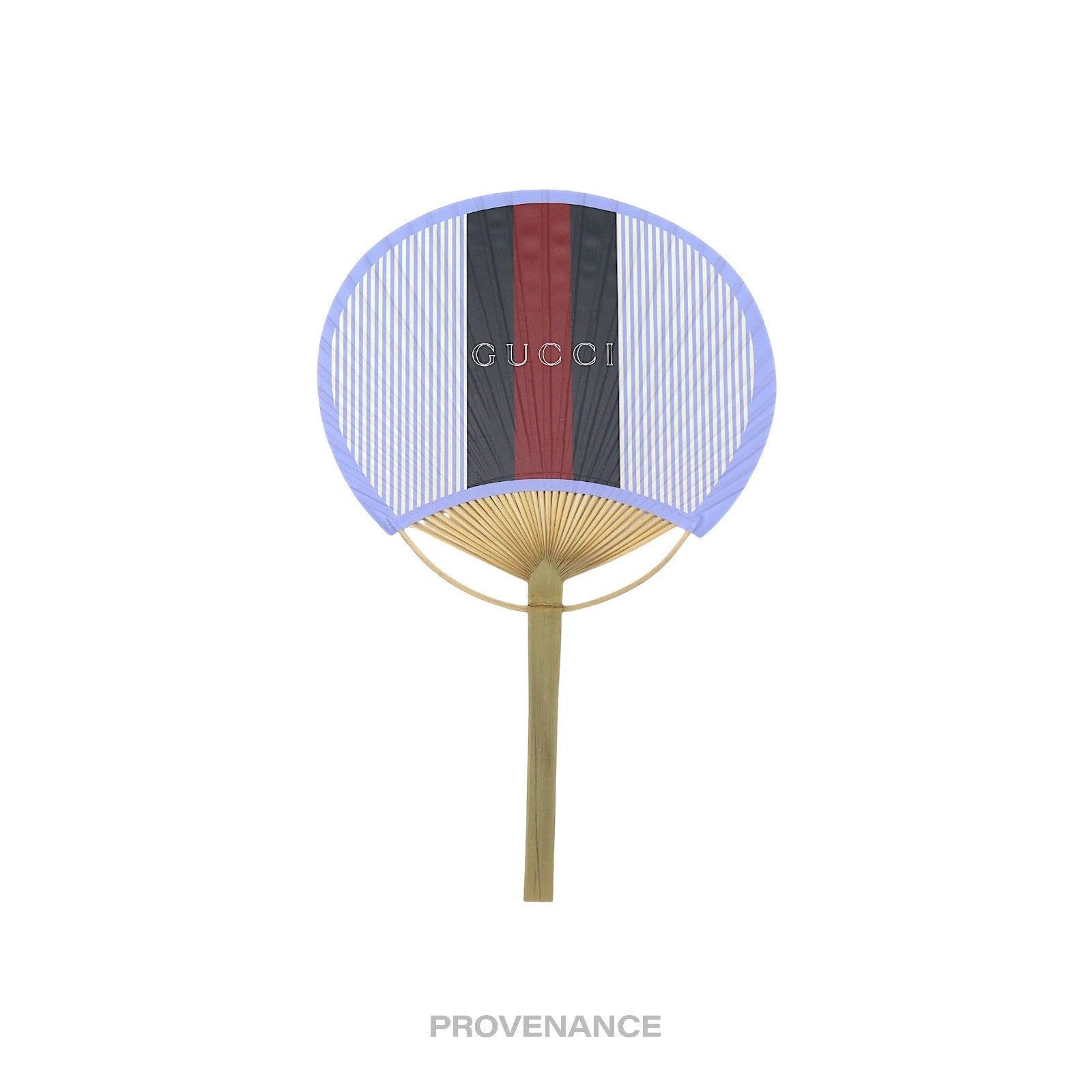Gucci Web Logo Bamboo Hand Fan - Black/Red Striped