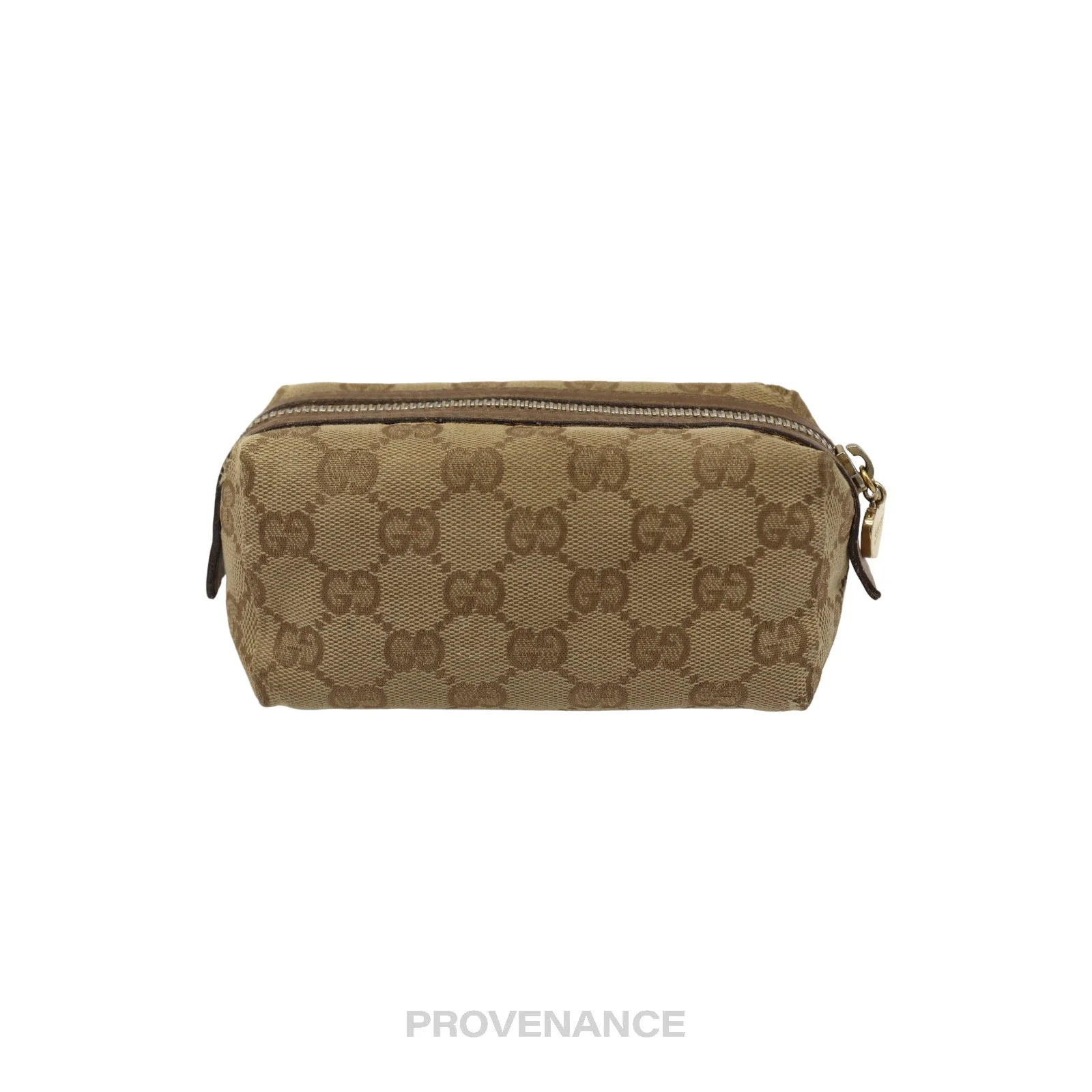 Gucci Zip Pouch - GG Canvas Heart 100% Authentic - Money-Back Guarantee Condition Notes: some signs of cosmetic wear some interior soiling - Classic GG Canvas - Heart hardware detail - Zip closure - Tonal leather trim - Textile lining - Made in Italy FREE EXPRESS SHIPPING SHIPS WITHIN 24HR. HASSLE-FREE RETURNS