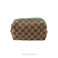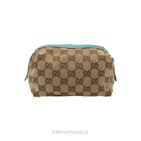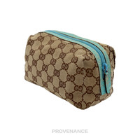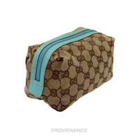 Gucci Zip Pouch - GG Canvas Turquoise 100% Authentic - Money-Back Guarantee Condition Notes: some signs of cosmetic wear some interior soiling - Classic GG Canvas - Zip closure - Contrasting leather trim - Textile lining - Made in Italy FREE EXPRESS SHIPPING SHIPS WITHIN 24HR. HASSLE-FREE RETURNS