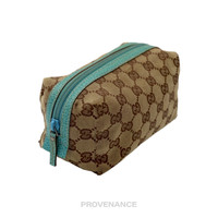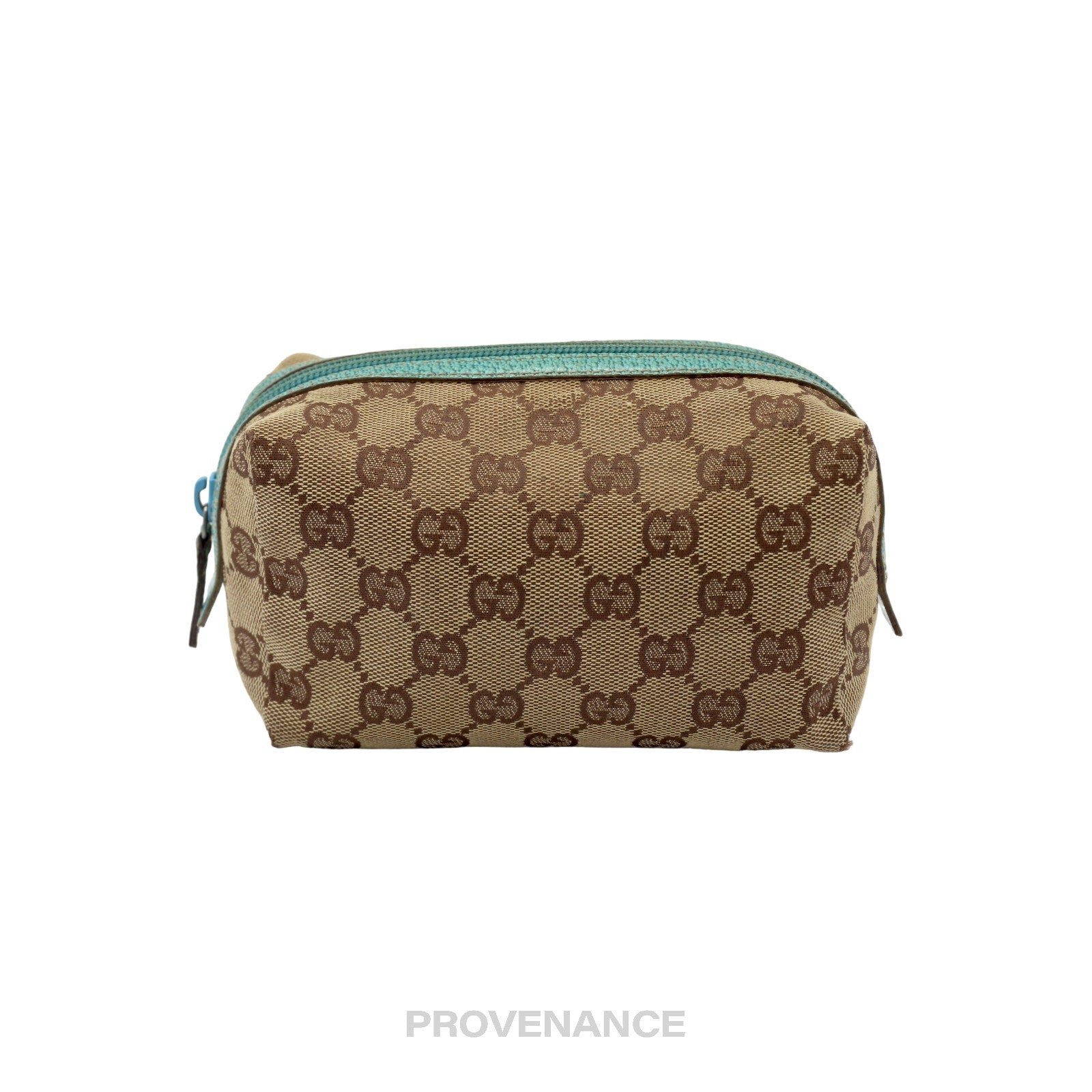 Gucci Zip Pouch - GG Canvas Turquoise 100% Authentic - Money-Back Guarantee Condition Notes: some signs of cosmetic wear some interior soiling - Classic GG Canvas - Zip closure - Contrasting leather trim - Textile lining - Made in Italy FREE EXPRESS SHIPPING SHIPS WITHIN 24HR. HASSLE-FREE RETURNS