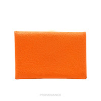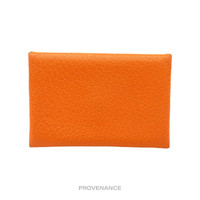 Hermès Calvi Card Wallet - Orange Chevre Mysore Leather