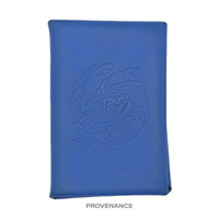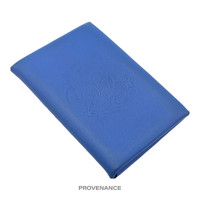 Hermes Sailor Tattoo Calvi Card Wallet - Blue/Grey Leather 100% Authentic - Money Back Guarantee ORIGINAL RETAIL BOX INCLUDED A RARE HERMES SAILOR’S TATTOO EDITION CALVI WALLET IN BLUE SWIFT LEATHER WITH A GREY CHEVRE LINING Condition Notes: Unused condition very minor signs of cosmetic wearpossible due to storage - "Sailor Tattoo" motif debossed at obverse - Vivid Blue Hydra Swift Calfskin - Gris Perle Chevre Mysore interior - 2 card compartments - Snap closure - Made in France Measures 3.3" long x 3.1" high FREE EXPRESS SHIPPING SHIPS WITHIN 24HR. HASSLE-FREE RETURNS