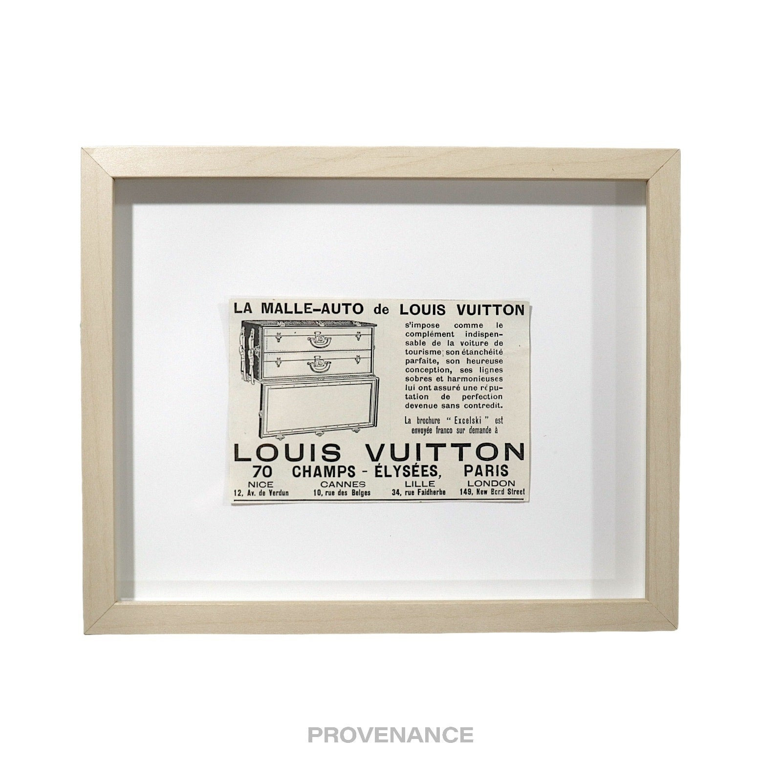 Louis Vuitton Antique Newsprint Ad - MALLE-AUTO Birch 100% Authentic - Money Back Guarantee Condition Notes: Professionally framed with archival materials Condition of printed matter excellent and consistent with age - Genuine c. 1920's vintage antique Louis Vuitton advertisement - Highly collectible, very few surviving pieces worldwide - Black ink on newsprint - Highly collectible Framed Dimensions: 22 x 27 x 3.25 cm. FREE EXPRESS SHIPPING SHIPS WITHIN 24HRS. HASSLE-FREE RETURNS