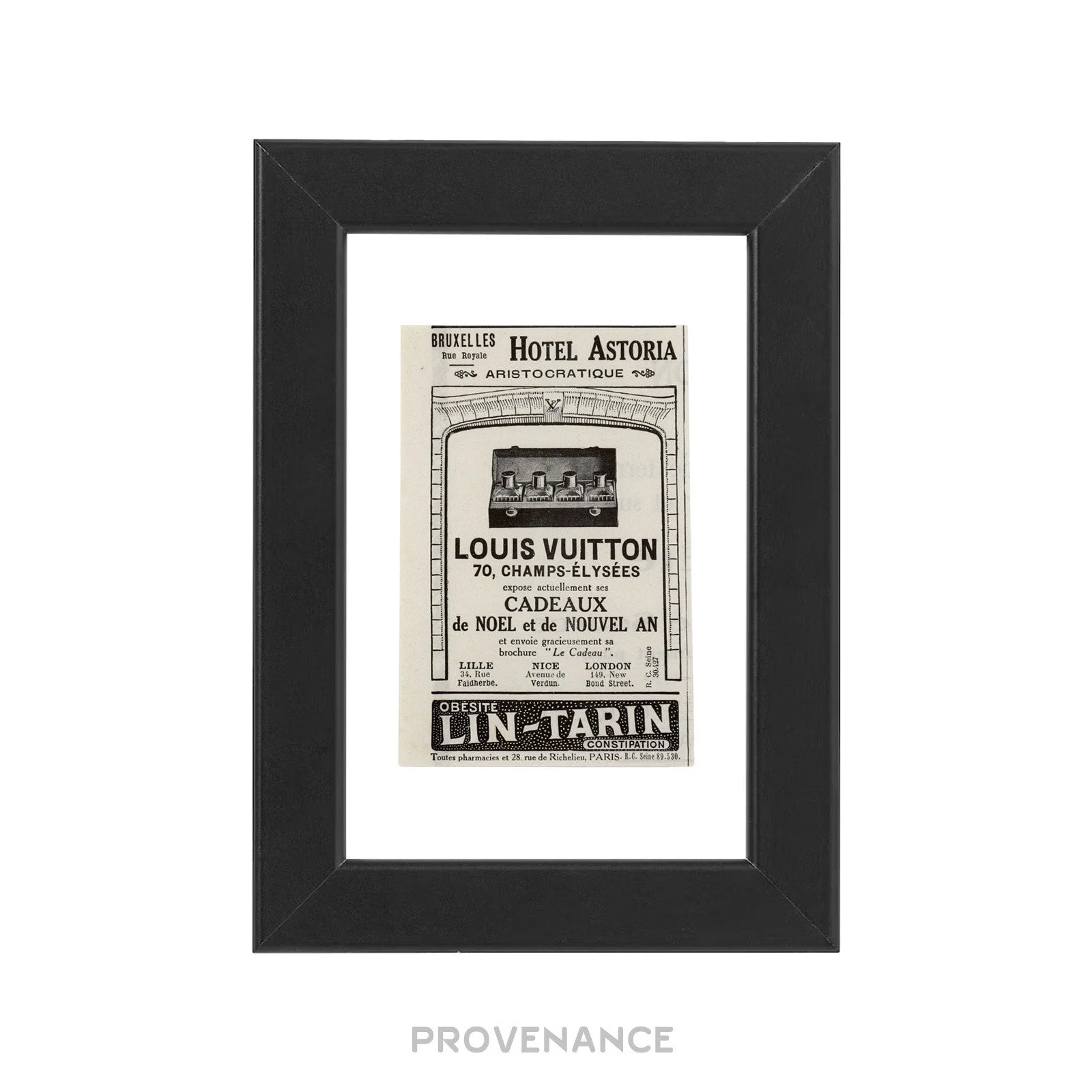 Louis Vuitton Antique Vintage Newsprint Ad - HOTEL ASTORIA 100% Authentic - Money Back Guarantee RARE SMALL FORMAT ANTIQUE LOUIS VUITTON ADVERTISEMENT IDEAL INVESTMENT FOR ELEVATED HOME STAGING AND DECORATION Condition Notes: Professionally framed with archival materials Condition of printed matter excellent and consistent with age - Genuine c. 1920's vintage antique Louis Vuitton advertisement - Highly collectible, very few surviving pieces worldwide - Black ink on newsprint - Highly collectible Framed Dimensions: 13 x 18 x 1 cm. Please note that in order to preserve the item in optimal storage conditions, this piece is framed-to-order. Please allow 1-2 days for fulfillment. FREE EXPRESS SHIPPING HASSLE-FREE RETURNS