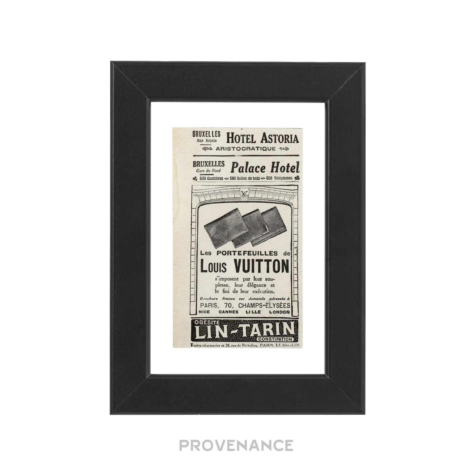 Louis Vuitton Antique Vintage Newsprint Ad - LV Wallets 100% Authentic - Money Back Guarantee RARE SMALL FORMAT ANTIQUE LOUIS VUITTON ADVERTISEMENT IDEAL INVESTMENT FOR ELEVATED HOME STAGING AND DECORATION Condition Notes: Professionally framed with archival materials Condition of printed matter excellent and consistent with age - Genuine c. 1920's vintage antique Louis Vuitton advertisement - Highly collectible, very few surviving pieces worldwide - Black ink on newsprint - Highly collectible Framed Dimensions: 13 x 18 x 1 cm. Please note that in order to preserve the item in optimal storage conditions, this piece is framed-to-order. Please allow 1-2 days for fulfillment. FREE EXPRESS SHIPPING HASSLE-FREE RETURNS