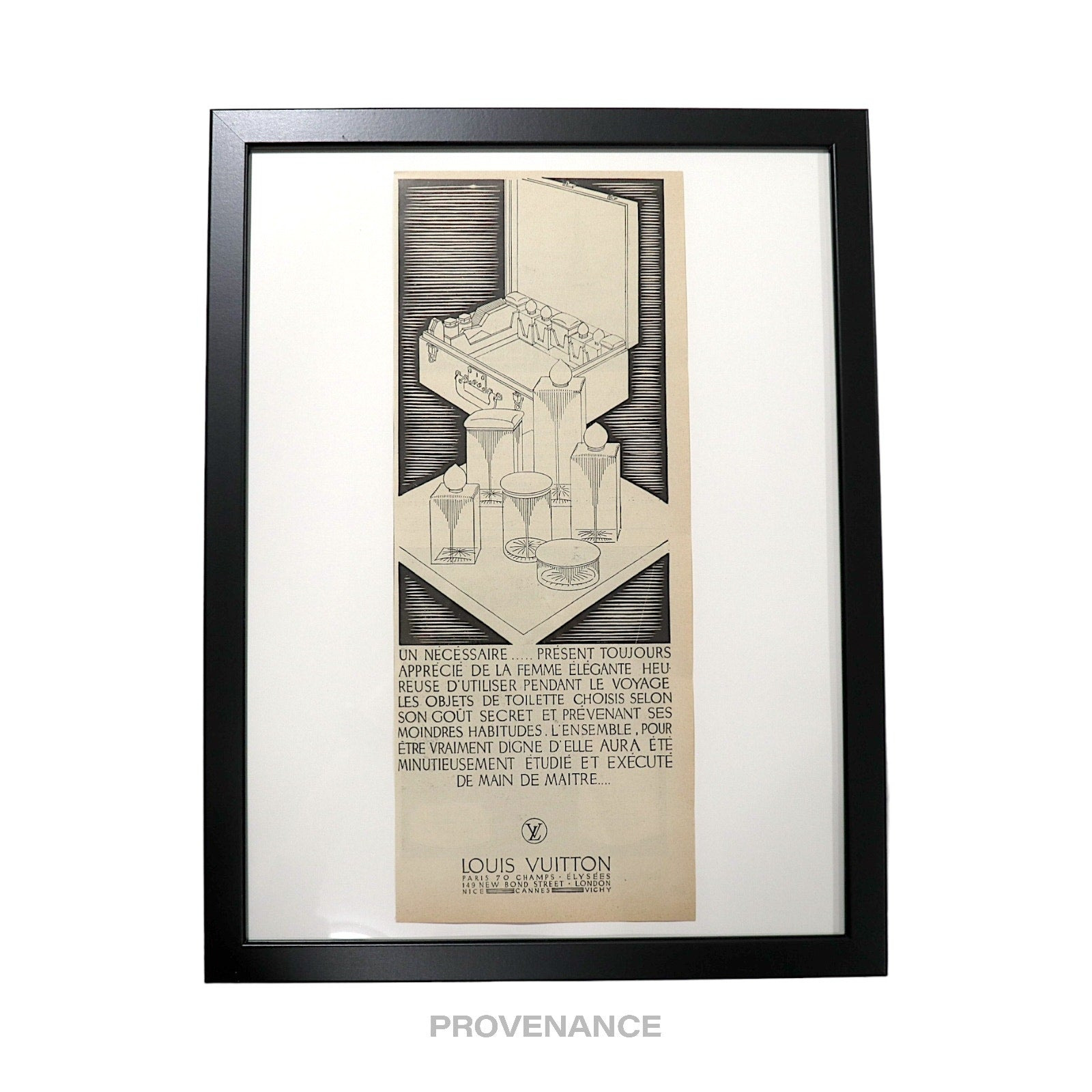 Louis Vuitton Antique Vintage Newsprint Ad - Perfume Case 100% Authentic - Money Back Guarantee IDEAL INVESTMENT FOR ELEVATED HOME STAGING AND DECORATION Condition Notes: Professionally framed with archival materials Condition of printed matter excellent and consistent with age - Genuine c. 1920's vintage antique Louis Vuitton advertisement - Highly collectible, very few surviving pieces worldwide - Black ink on newsprint - Highly collectible Framed Dimensions: 44 x 34 x 1 cm. FREE EXPRESS SHIPPING SHIPS WITHIN 24HRS. HASSLE-FREE RETURNS