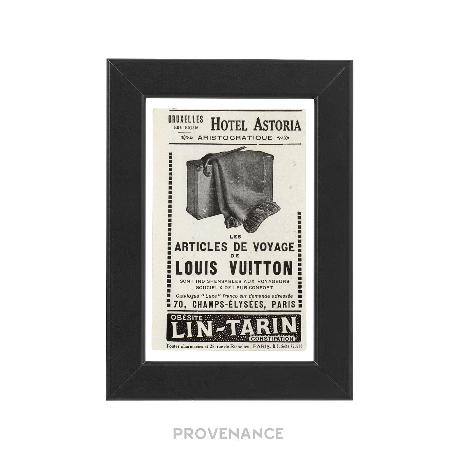 Louis Vuitton Antique Vintage Newsprint Ad - TRAVEL GOODS 100% Authentic - Money Back Guarantee RARE SMALL FORMAT ANTIQUE LOUIS VUITTON ADVERTISEMENT IDEAL INVESTMENT FOR ELEVATED HOME STAGING AND DECORATION Condition Notes: Professionally framed with archival materials Condition of printed matter excellent and consistent with age - Genuine c. 1920's vintage antique Louis Vuitton advertisement - Highly collectible, very few surviving pieces worldwide - Black ink on newsprint - Highly collectible Framed Dimensions: 13 x 18 x 1 cm. Please note that in order to preserve the item in optimal storage conditions, this piece is framed-to-order. Please allow 1-2 days for fulfillment. FREE EXPRESS SHIPPING HASSLE-FREE RETURNS