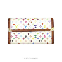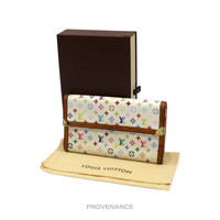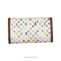Louis Vuitton × Takashi Murakami International Wallet - Monogram Multicolore White 100% Authentic - Money-Back Guarantee ORIGINAL RETAIL BOX + DUST BAG INCLUDED From the limited edition collaboration between artist Takashi Murakami and Louis Vuitton, the International wallet is rendered in a white Monogram Multicolore coated canvas, trimmed with natural Vachetta leather and accented with gold-tone brass hardware. About Monogram Multicolore: The Monogram Multicolore collection was first introduced in 2003 and has since become iconic and highly collectible due to its whimsical aesthetic. Not only is the print eye-catching -- there is also a high level of craftsmanship due to the thirty-three silkscreened colors. FEATURES Snap closure on flap Interior snap pocket, two slip pockets and four card slots Coated Canvas Leather lining Gold hardware DETAILS Length: 7.35" (19 cm) Height: 4" (10 cm) Depth: 1" (3 cm) Made in France 2004 Condition Notes: some signs of cosmetic wear "M.K" foil stamp in gold atinterior FREE EXPRESS SHIPPING SAME-DAY SHIPPING HASSLE-FREE RETURNS