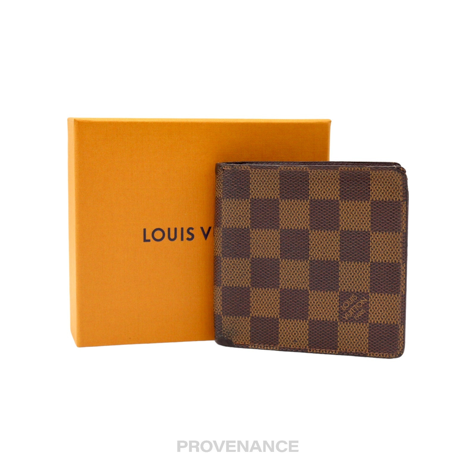 Louis Vuitton Marco Wallet - Damier Ebene 100% Authentic - Money Back Guarantee ORIGINAL RETAIL BOX INCLUDED Condition Notes: some signs of cosmetic wear some corner wear From the Louis Vuitton website: An elegant way to carry around cards, cash and coins due to its functional square shape which fits comfortably in any pocket. 10 x 10 x 1 cm (Length x height x width ) - 3 credit card slots - 2 compartments for bills - 1 coin compartment - 1 side slot for receipts - Cross grain leather lining - Gold color metallic pieces FREE EXPRESS SHIPPING SHIPS WITHIN 24HR. HASSLE-FREE RETURNS