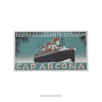Louis Vuitton Ocean Liner Sticker Postcard - Caparcona 100% Authentic - Money-Back Guarantee Condition Notes: New, Unused Condition This item may be used as a post card and/or as a label. From Louis Vuitton: "Gaston-Louis Vuitton (1883-1970), grandson of Louis, inquisitive by nature and bibliophile, built up a unique collection of more than three thousand labels, now meticulously preserved in the archives of the House. These were used by hotels, airlines and ocean liners, pasted on trunks and other pieces of luggage, to inform onlookers about the wide-ranging travels of their owners. With their strong lines and colourful illustrations, those affixed by airlines bear witness to their time. Legendary carriers such as Swissair, Japan Airlines, Air France, Delta Airlines and Varig inspired heavenly heights of imagination, dissolving boundaries along the way. The trunk-maker began serving this new golden age of travel well before regular connections became accessible to passengers. As early as 1910, he developed luggage pieces specifically suited to very first aeroplanes - the Aero trunk, weighing under 57 pounds, and its ladies' counterpart, the Aviette, only about 62 pounds. These quickly gained favour with dashing pilots like Louis Bleriot, Roland Garros and Charles Lindbergh. Owing to his generous girth, Gaston-Louis Vuitton even enjoyed the honour of joining the first line of defence to protect the American aviator from the great gathering of humanity charging his plane, the Spirit of St. Louis, when it landed at Le Bourget on 21 May 1927. Lindbergh had just completed the first non-stop transatlantic flight, connecting New York and Paris in thirty-three hours and thirty minutes. The House is pleased to present thirty vintage airline labels from the Gaston-Louis Vuitton collection, reproduced as postcards. Following upon the releases of three earlier box sets as well as a hardcover volume, the trunk-maker continues to pay tribute to the bygone tradition of sticking labels on the trunks and luggage pieces of great travellers." FREE EXPRESS SHIPPING SHIPS WITHIN 24HR. HASSLE-FREE RETURNS