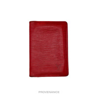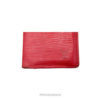 Louis Vuitton Pocket Organizer - Red Epi Leather 100% Authentic - Money-Back Guarantee ORIGINAL RETAIL BOX INCLUDED Condition Notes: some signs of cosmetic wear ORIGINAL RETAIL BOX INCLUDED - 1 exterior utility compartment - 2 credit card slots - 3 interior utility compartments - Tonal leather lining - Beautiful and durable Epi Leather FREE EXPRESS SHIPPING SHIPS WITHIN 24HR. HASSLE-FREE RETURNS