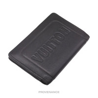 Louis Vuitton Pocket Organizer Wallet - Black Dark Infinity Calf Leather 100% Authentic - Money-Back Guarantee ORIGINAL RETAIL BOX + DUST BAG INCLUDED Condition Notes: some signs of cosmetic wear - "LOUIS VUITTON" debossed at exterior - 3 interior card slots - 5 interior utility compartments - 1 exterior utility compartment - Tonal leather lining FREE EXPRESS SHIPPING SHIPS WITHIN 24HR. HASSLE-FREE RETURNS