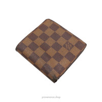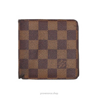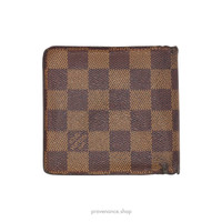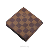 Louis Vuitton Marco Wallet - Damier Ebene 100% Authentic - Money Back Guarantee Condition Notes: some signs of cosmetic wear some corner wear From the Louis Vuitton website: An elegant way to carry around cards, cash and coins due to its functional square shape which fits comfortably in any pocket. 10 x 10 x 1 cm (Length x height x width ) - 3 credit card slots - 2 compartments for bills - 1 coin compartment - 1 side slot for receipts - Cross grain leather lining - Gold color metallic pieces FREE EXPRESS SHIPPING SHIPS WITHIN 24HR.