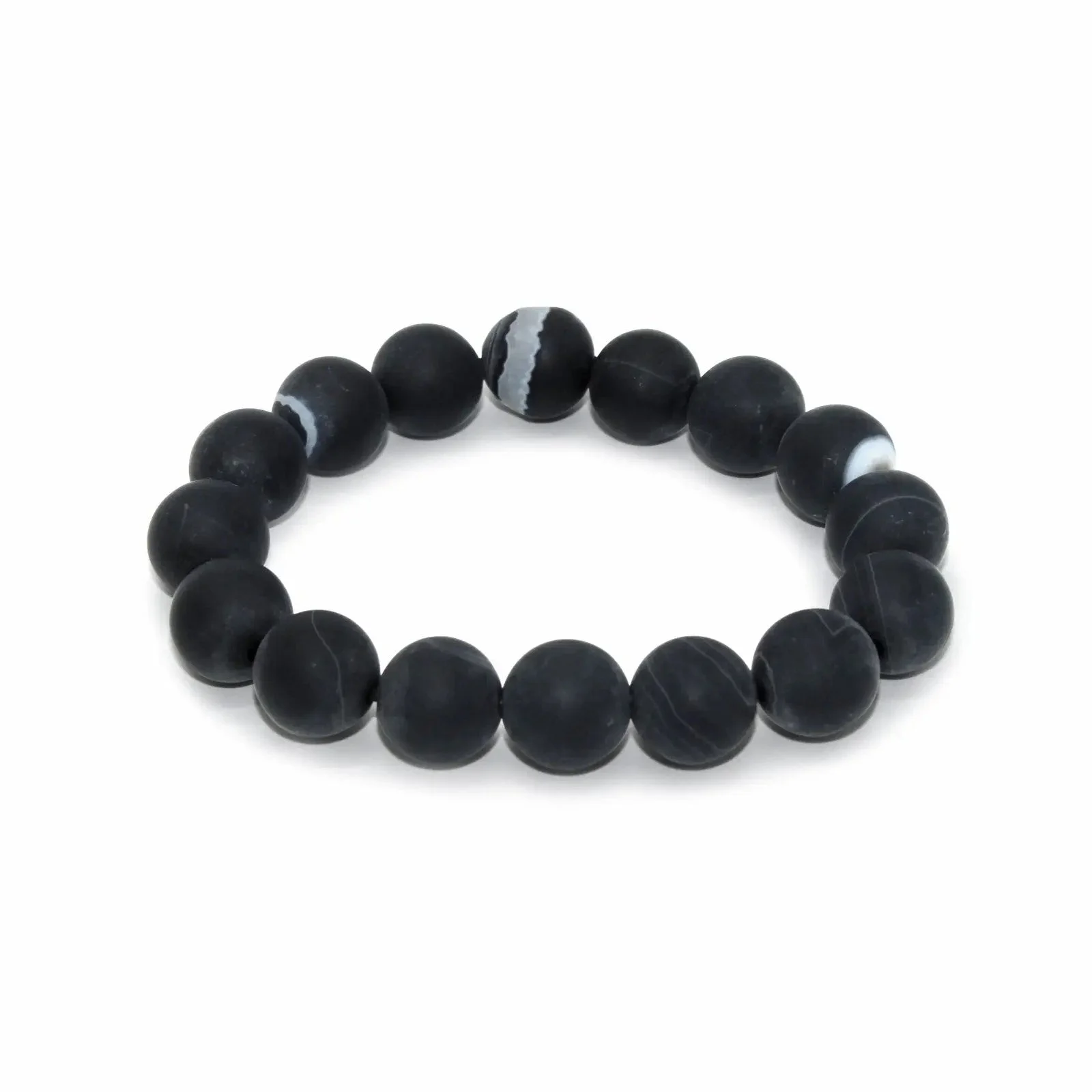 Bracelet - Matte Black Striped Agate 12mm. NEW 100% Authentic - Money-Back Guarantee - Genuine Striped Agate stones - 12 mm. AAA stones - Approx. 7" circumference - Elasticized to fit any wrist size - Handmade in Italy - Velvet pouch included FREE EXPRESS SHIPPING SHIPS WITHIN 24HRS.