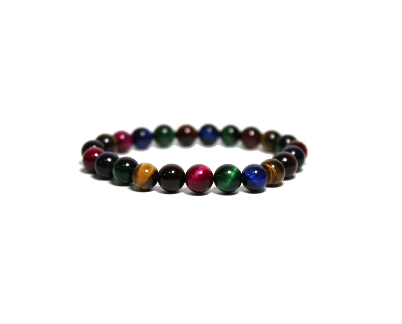 Bracelet - Multicolour Tiger's Eye NEW 100% Authentic - Money-Back Guarantee - Genuine Tiger's Eye stones - 8 mm. AAA stones - Approx. 7" circumference - Elasticized to fit any wrist size - Handmade in Italy - Velvet pouch included EXPRESS SHIPPING SHIPS WITHIN 24HRS.