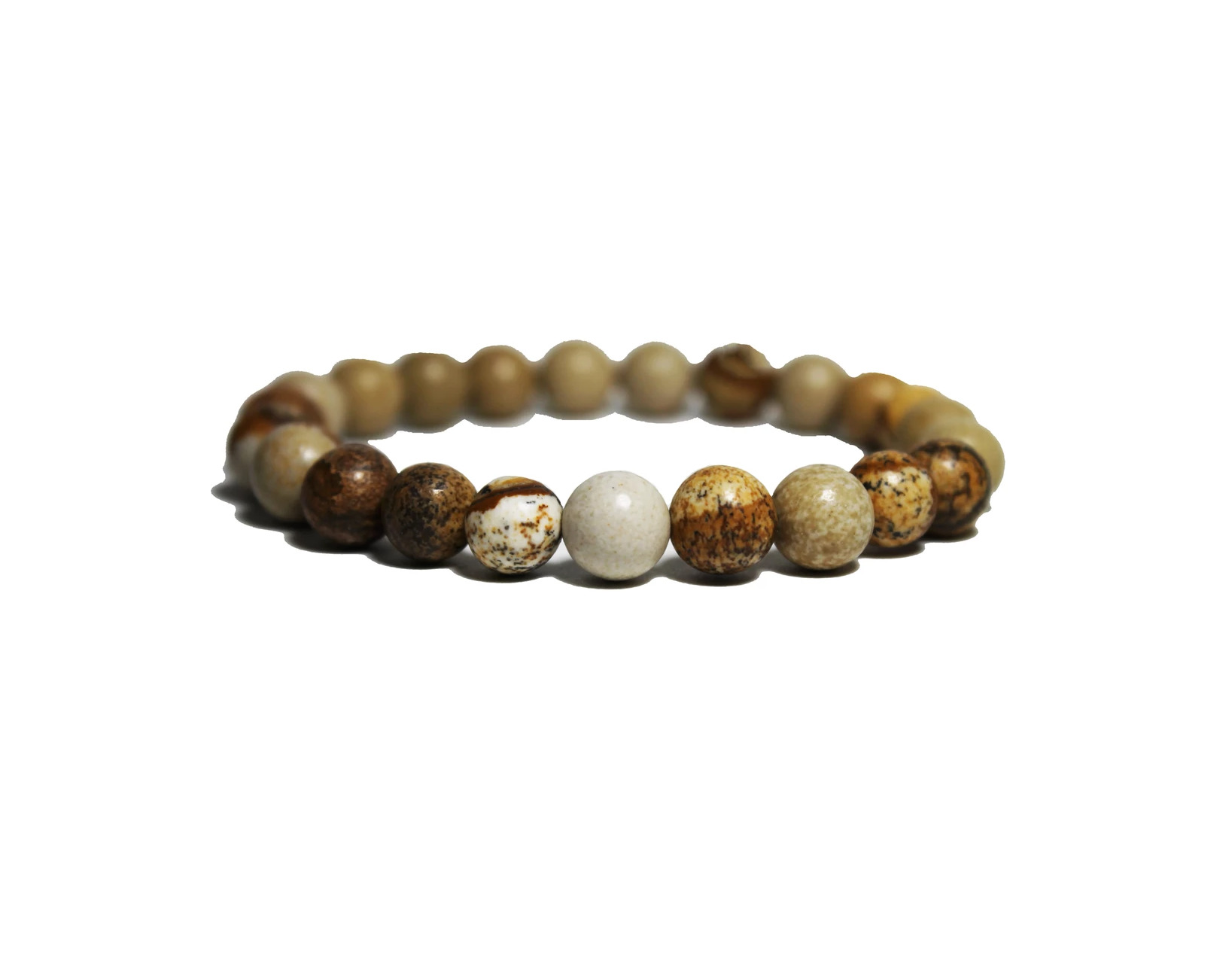 Bracelet - Picture Jasper 100% Authentic - Money-Back Guarantee - Genuine Picture Jasper stones - 8 mm. AAA stones - Approx. 7" circumference - Elasticized to fit any wrist size - Handmade in Italy - Velvet pouch included FREE EXPRESS SHIPPING SHIPS WITHIN 24HRS. NO CUSTOMS FEES