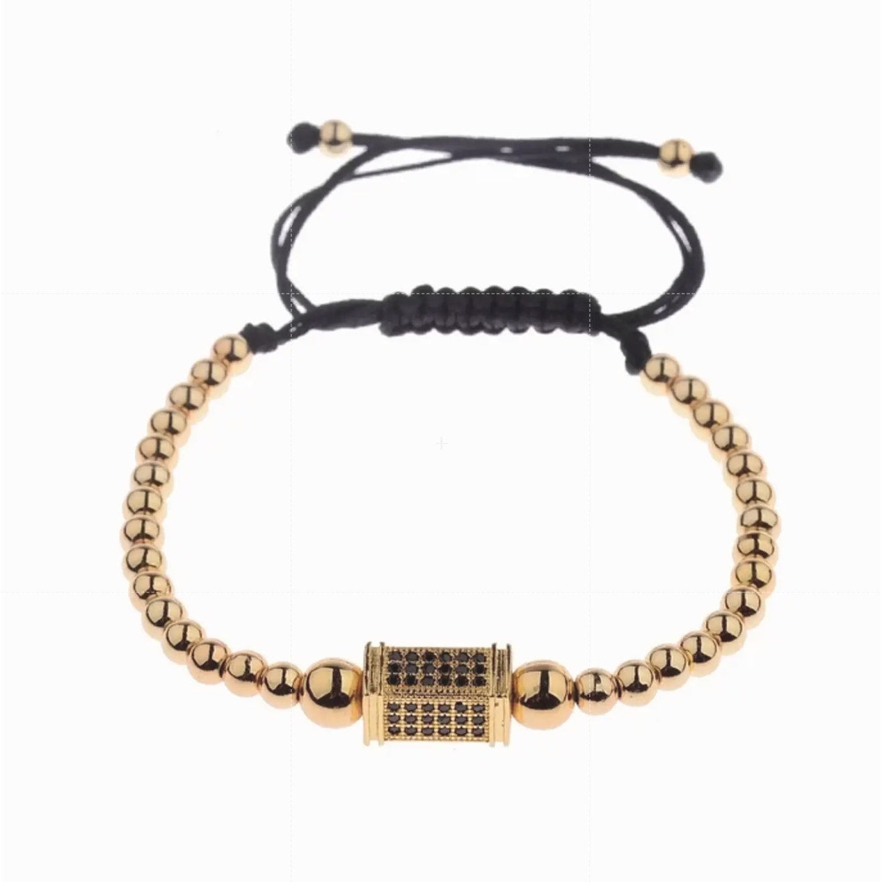 Bracelet - Yellow Gold Pave 100% Authentic - Money-Back Guarantee - Genuine 18K Yellow Gold over .999 copper beads - Black Diamond CZ stones in micro-pave setting - 4mm. beads - HEAVY - Adjustable 5.5"-8.5" - Snake knot closure - Handmade in Italy - Velvet pouch included FREE EXPRESS SHIPPING SHIPS WITHIN 24HRS.