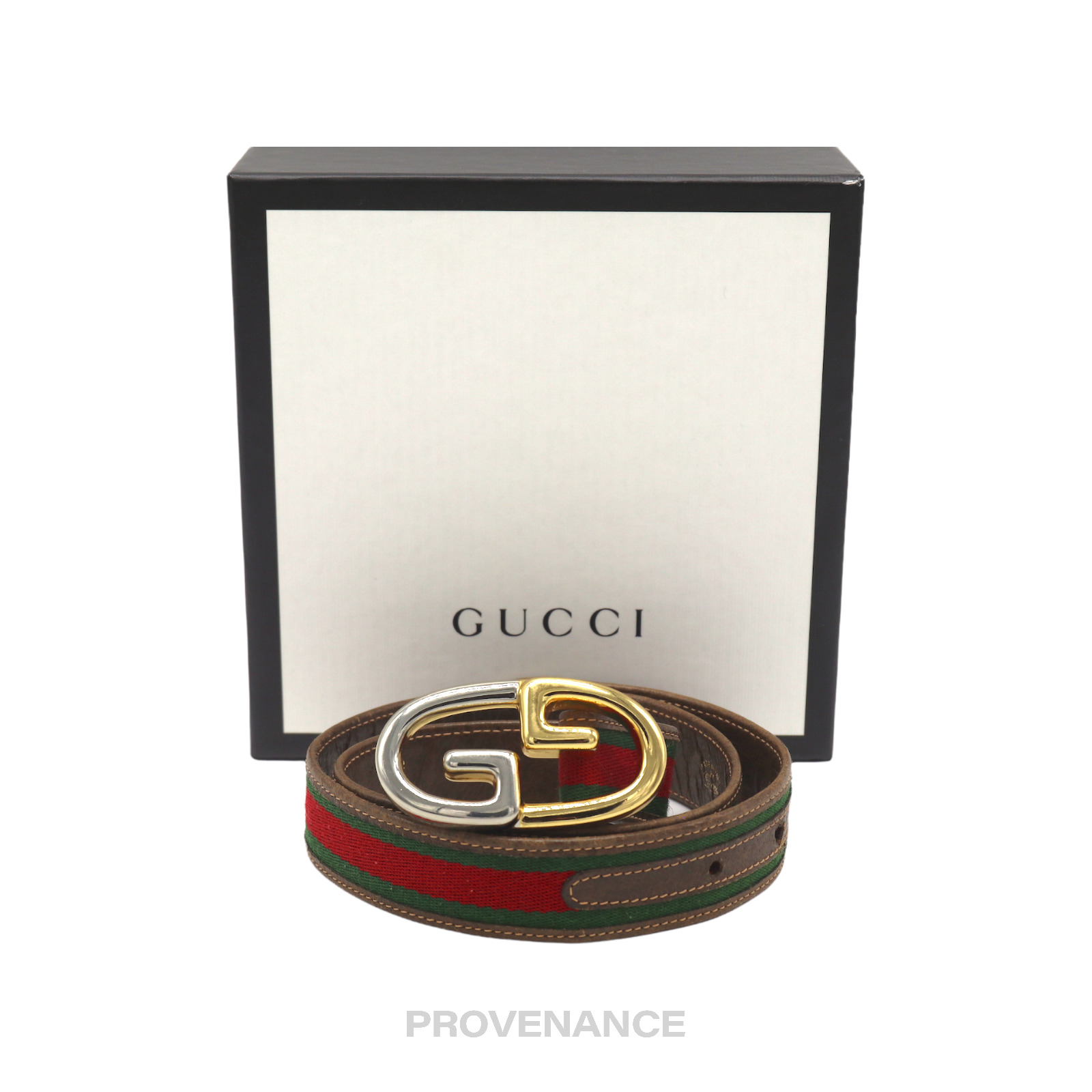 Gucci GG Web Belt 100% Authentic - Money Back Guarantee ORIGINAL RETAIL BOX INCLUDED Condition Notes: some signs of cosmetic wear Marked size: 75 cm. ~ 30" - Classic GG Canvas - Tonal leather lining - Palladium/Gold hardware - Made in Italy From Gucci Website: A GG canvas belt finished with Logo buckle. FREE EXPRESS SHIPPING SHIPS WITHIN 24HR. HASSLE-FREE RETURNS