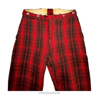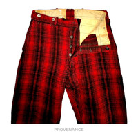 Woolrich Wool Hunting Pants Knickers - Red/Black Plaid 34 100% Authentic - Money Back Guarantee ULTRA RARE 1950's WOOLRICH PIECE OF AMERICANA IN REMARKABLE CONDITION Condition Notes: some signs of cosmetic wear Professionally cleaned Size: 34”x27” - Rare 1950's Woolrich piece in remarkable condition - Heavy mackinaw wool - Reinforced knees - Lace closure - Made in USA FREE EXPRESS SHIPPING SHIPS WITHIN 24HR. HASSLE-FREE RETURNS
