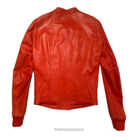 Rick Owens Walrus Intarsia Leather Jacket - 50 Red 100% Authentic - Money Back Guarantee Tagged size: 50 (IT) Approx. US Men's M - Timeless Intarsia Jacket - Supple Red Calf Leather - Snap and zip closure - Wool ribbed cuffs FREE EXPRESS SHIPPING SHIPS WITHIN 24HR. HASSLE-FREE RETURNS