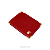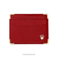 Rolex Card Holder Wallet - Red Leather 100% Authentic - Money Back Guarantee Condition Notes: - Unused condition - some signs of minor cosmetic wear due to storage - slight variances between individual items may occur as more than one piece is available Dimensions: 11.75 x 9 cm. - 2 card slots - Rolex logo in gold foil at exterior - Gold hardware FREE EXPRESS SHIPPING SAME-DAY SHIPPING HASSLE-FREE RETURNS