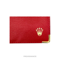 Rolex Card Holder Wallet - Red Leather 100% Authentic - Money Back Guarantee Condition Notes: - Unused condition - some signs of minor cosmetic wear due to storage - slight variances between individual items may occur as more than one piece is available Dimensions: 11.75 x 9 cm. - 2 card slots - Rolex logo in gold foil at exterior - Gold hardware FREE EXPRESS SHIPPING SAME-DAY SHIPPING HASSLE-FREE RETURNS