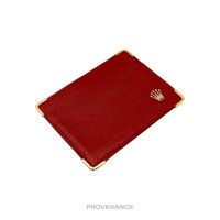 Rolex Card Holder Wallet - Red Leather II 100% Authentic - Money Back Guarantee Condition Notes: - Unused condition - some signs of minor cosmetic wear due to storage - slight variances between individual items may occur as more than one piece is available Dimensions: 11.75 x 9 cm. - 2 card slots - Rolex logo in gold foil at exterior - Gold hardware FREE EXPRESS SHIPPING SAME-DAY SHIPPING HASSLE-FREE RETURNS