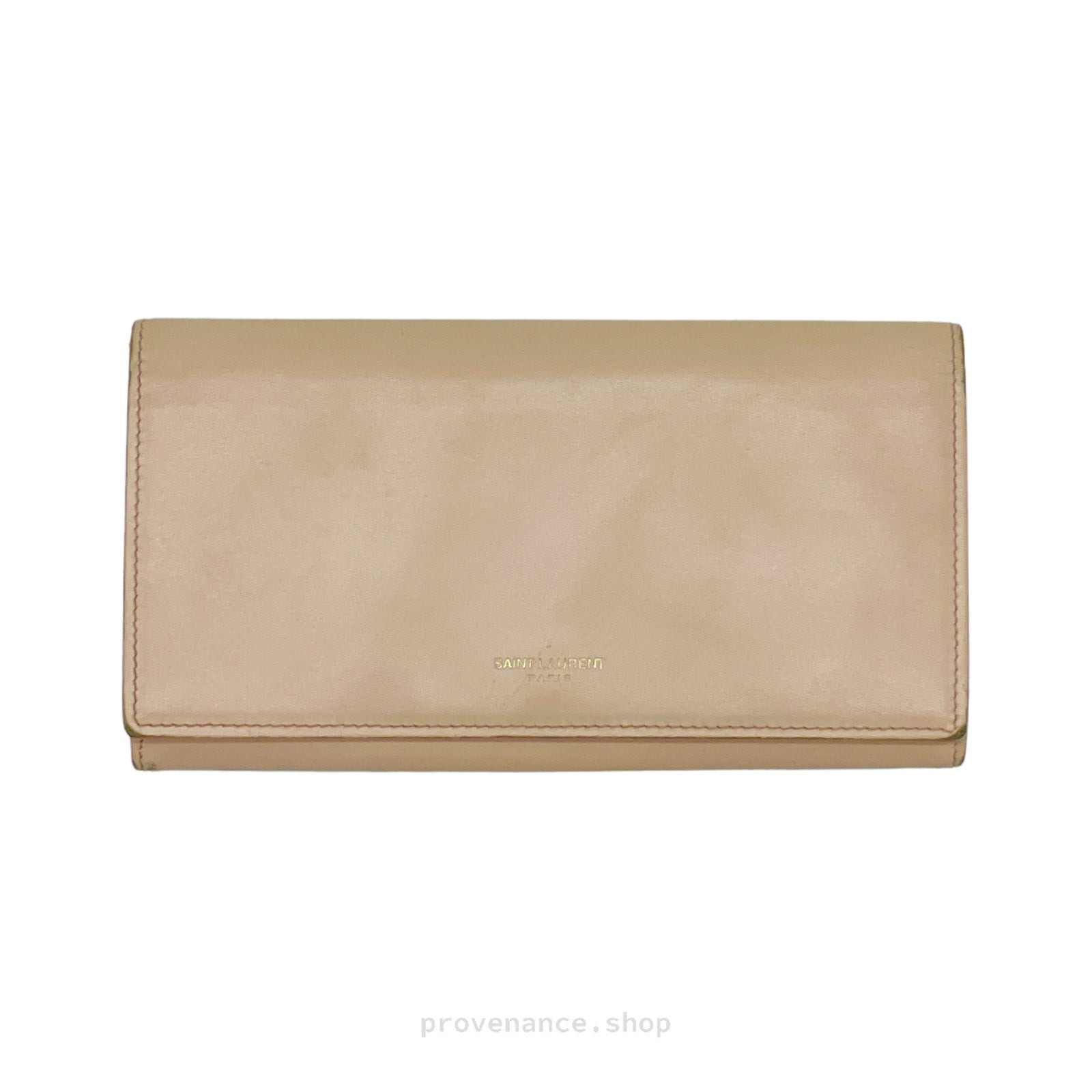 Saint Laurent Paris Long Wallet - Blush 100% Authentic - Money Back Guarantee Condition Notes: some signs of cosmetic wear - Minimalistic design - Tonal leather lining - 1 zipped compartment - 2 side slots - Made in Italy FREE EXPRESS SHIPPING SHIPS WITHIN 24HR.