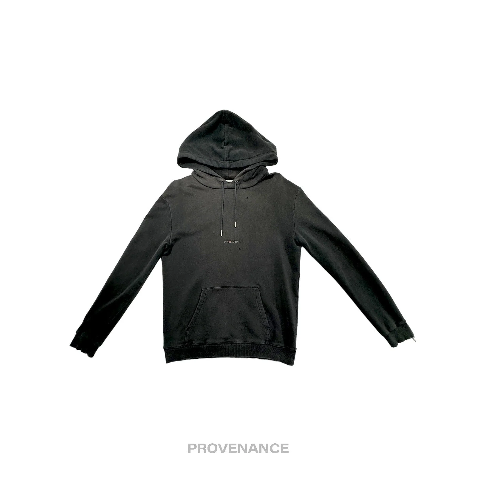 Saint Laurent Paris SLP Logo Hoodie - Distressed Black M 100% Authentic - Money Back Guarantee Condition Notes: Intentionally distressed design some signs of wear professionally cleaned Tagged Size: M - 100% Cotton - Drawstring closure - Ribbed cuffs and hem - Distressed details - Made In France FREE EXPRESS SHIPPING SAME-DAY SHIPPING. HASSLE-FREE RETURNS