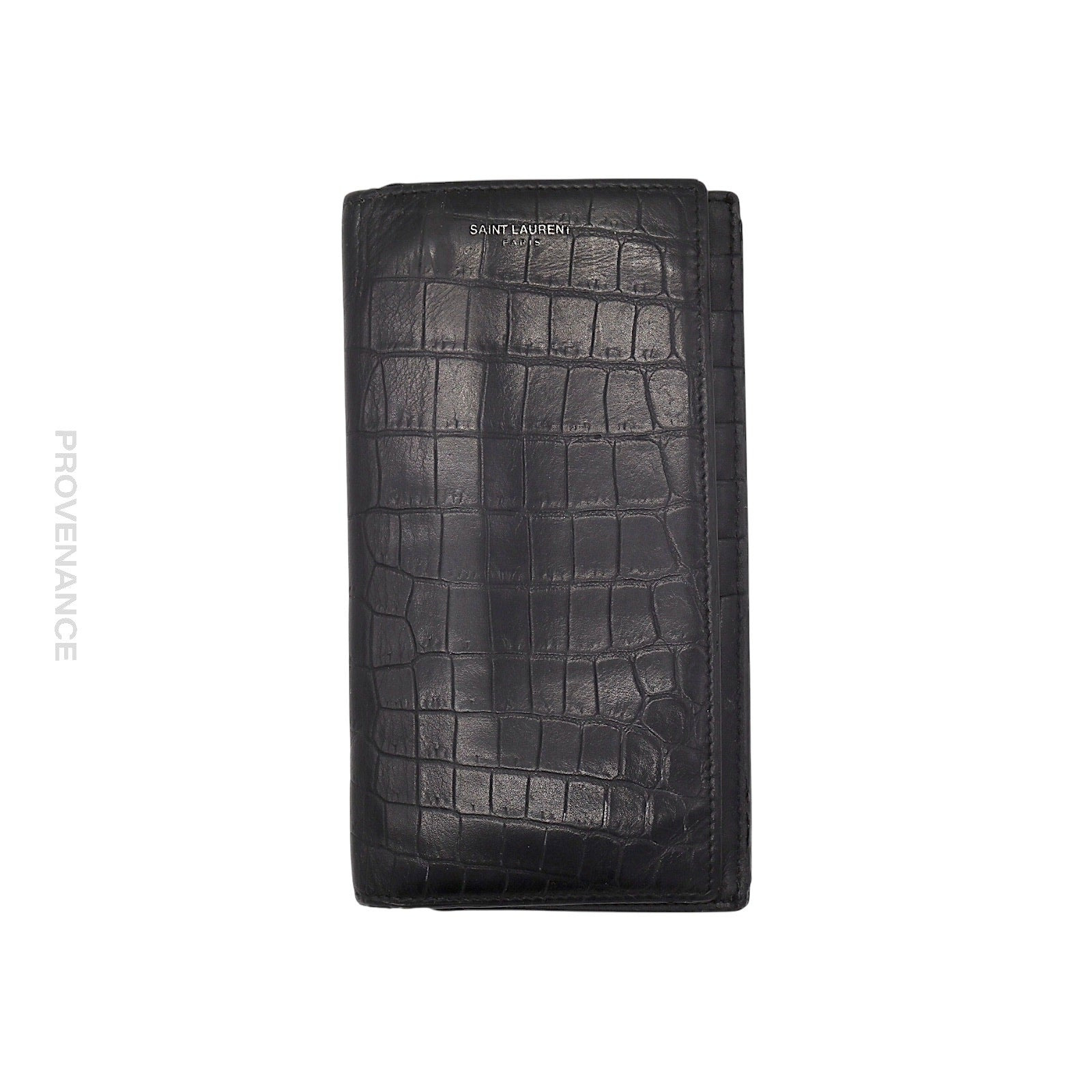 Saint Laurent Paris SLP Long Wallet - Black Croc Leather