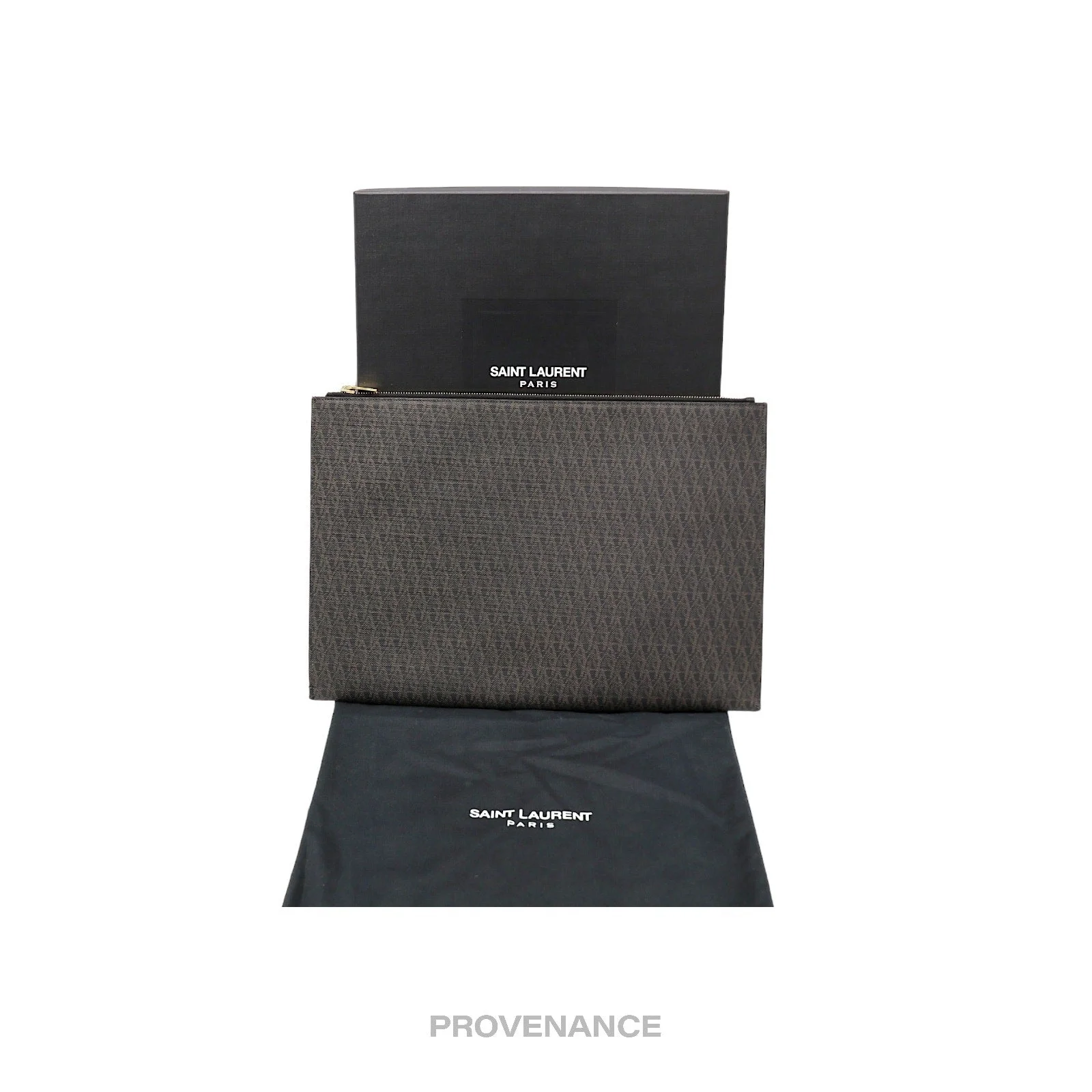 Saint Laurent Paris SLP Zip Pouch - YSL Monogram Brown 100% Authentic - Money-Back Guarantee ORIGINAL RETAIL BOX, DUST BAG INCLUDED Condition Notes: some minor signs of cosmetic wear - Iconic Monogram - Single zipped compartment - Tonal textile lining - Gold Hardware Approximate Dimensions: 29 x 21 cm. FREE EXPRESS SHIPPING SAME-DAY SHIPPING HASSLE-FREE RETURNS