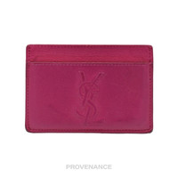 Saint Laurent Paris YSL Logo Card Holder Wallet - Fuchsia Leather 100% Authentic - Money Back Guarantee Condition Notes: some signs of cosmetic wear - Iconic YSL logo embossed at exterior - Contrasting leather lining - 2 exterior card slots - 1 interior compartment - Made in Italy FREE EXPRESS SHIPPING SHIPS WITHIN 24HR. HASSLE-FREE RETURNS