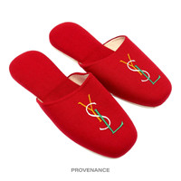 Yves Saint Laurent YSL Logo Slipper - Red Canvas 100% Authentic - Money-Back Guarantee Condition Notes:- Unworn NOS Vintage condition some signs of wear possible due to storage - One Size (Approx. US 8) - Embroidered logo at toebox FREE EXPRESS SHIPPING SHIPS WITHIN 24HR. HASSLE-FREE RETURNS