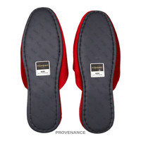 Yves Saint Laurent YSL Logo Slipper - Red Velour 100% Authentic - Money-Back Guarantee Condition Notes:- Unworn NOS Vintage condition some signs of wear possible due to storage - One Size (Approx. US 8) - Embroidered logo at toebox FREE EXPRESS SHIPPING SHIPS WITHIN 24HR. HASSLE-FREE RETURNS