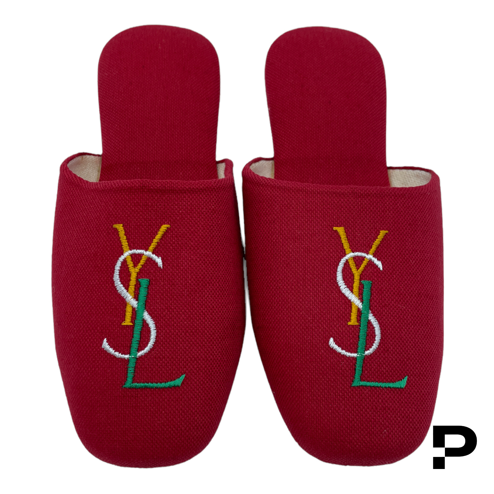Yves Saint Laurent YSL Twill Logo Slipper - Red 100% Authentic - Money-Back Guarantee Condition Notes: Unworn condition - One Size (Approx. US 8) - Embroidered logo at toebox FREE EXPRESS SHIPPING SHIPS WITHIN 24HR.