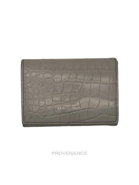 SLP Compact Snap Card Wallet - Gray Croc Leather