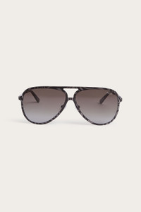 Flowing lines and timeless design define these aviator sunglasses, revisited with the unmistakable Pucci touch. The slim metal frame is embellished with a tone-on-tone archive print that extends along the front and temples. Dark gradient lenses complete the sophisticated look, suitable for every season. - Black, Other and Gradient Smoke - Printed metal frame - Size: 58 - Gradient lenses - Adjustable nose pads - Made in China - ID: EP0247M005805B