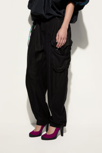 A sophisticated interpretation of utility style. These cargo-designed pants combine functionality and sophistication with their balloon fit, which creates volume and gently cinches at the ankle for a structured yet fluid effect.The four pockets add practicality, making them perfect for those who like a relaxed yet detail-oriented elegance. The black color makes them extremely versatile, ideal for any occasion. - Black - 100% Viscose - Pocket lining: 100% Cotton - Balloon fit - Ankle closure - Four pockets - Fluid fabric with soft finish - Gently dry clean - Made in Italy - ID: 5HRT655H648999 - The model is 178 cm tall and wears Italian size 38
