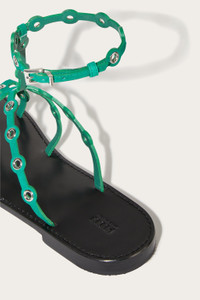 Worn for strolling along the coast or adding a touch of “laid-back” elegance to summer outfits, these flat sandals combine sophisticated design with everyday comfort. The suede upper and buckles decorated with small metal studs evoke a bold, rock appeal, ideal for accenting cool summer looks.The adjustable buckle closure ensures a perfect fit, while the leather sole adds a handcrafted touch that enhances the quality of the design. - Emerald - Suede leather - Micro stud decorated buckles - Adjustable buckle closure - One-piece leather sole - ID: 5HCC295HX10S33