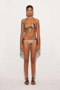 A must-have in your summer wardrobe, these bikini bottoms with adjustable side ties fit your shape perfectly, offering comfort and impeccable style.The Iride Baby print in shades of khaki adds a touch of sophistication, while the UV-treated stretch lycra provides protection and durability, making them ideal for both the beach and the pool. Pair them with the matching top for a fabulous look. - To offer you a unique Pucci garment, we use an all-over print that makes the product unrepeatable. Therefore, the pattern print may vary from the one displayed in the photo. - Khaki - 80% Polyamide, 20% Elastane (Main Fabric) - 80% Polyamide, 20% Elastane (Secondary Fabric) - Adjustable side ties - Stretchy Lycra with anti-UV treatment - Iride print - Hand wash. - Made in Italy - ID: 5HMX265H855062 - The model is 175 cm tall and wears a XS size.
