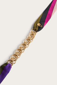 A refined accessory that plays with versatility. This necklace combines a gold-finish brass chain with two long silk twill bandeaus printed with the iconic Iride pattern, polychromatic and vibrant. Wear it to add a graphic and dynamic touch to your looks. - Polished gold - Gold finish - Main material: 100% brass - Bandeau: 100% silk - Adjustable and versatile accessory - Do not wash - Made in Italy - ID: 5UAM405U920N01