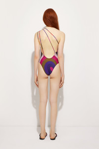 Clean lines and a graphic silhouette define this one-shoulder swimsuit, designed for those seeking a bold style even at the beach. Made from stretch Lycra with UV protection, it is decorated with the iconic Iride print in a vibrant multicolor palette that enhances the energy and brightness typical of the Pucci world. - To offer you a unique Pucci garment, we use an all-over print that makes the product unrepeatable. Therefore, the pattern print may vary from the one displayed in the photo. - Multicolor - Stretch Lycra - One-shoulder style - Fitted fit - Hand wash - Made in Italy - ID: 5UMC365U755011